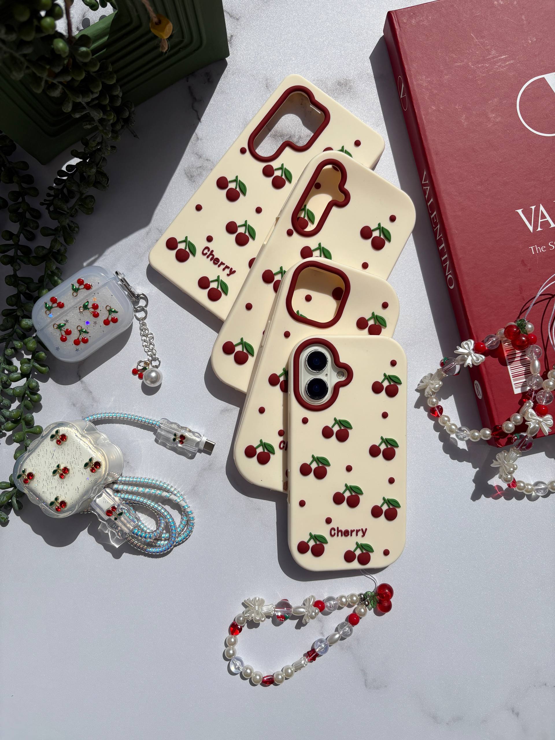 جنس: سیلیکونی (نرم و منعطف) رنگ اصلی: کرم/بژ روشن طرح: چاپ و برجستهسازی سهبعدی با تصویر گیلاسهای قرمز و برگهای سبز حاشیه لنز: قاب دوربین با یک لبه برجسته قرمز رنگ طراحی شده برای محافظت بیشتر از لنز متن روی قاب: کلمهی “Cherry” در پایین قاب درج شد استایل: فانتزی و دخترانه، مناسب برای کسانی که به طرحهای میوهای و رنگی علاقه دارن